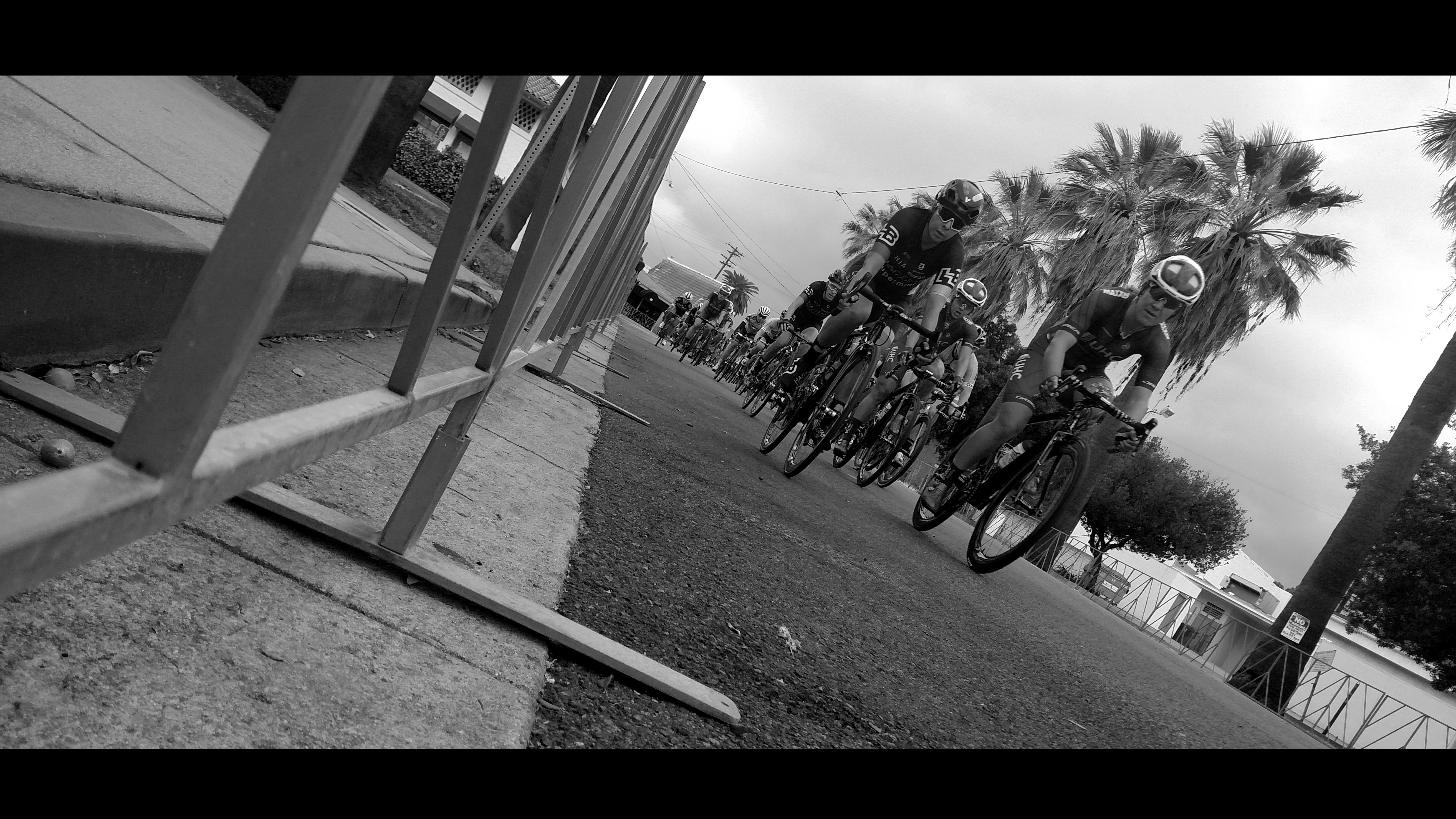 Before the races I wandered the course scoping out places where I thought I might get some interesting shots. I placed my camera and practiced shooting the terrain. The idea being that I would memorize a landmark beforehand. Then during the races I could simply place the camera, find the landmark in the LCD view finder and take the shot. This way I wouldn't be exposing my body to the track and minimizing the time that the camera was close to the racers. This way I wouldn't get hurt and that the racers wouldn't be distracted. When I say "placed the camera" I mean I was crouching down or laying down and reaching the camera out with one hand staring into the LCD display. A good example being the 4th shot. I sat there for a few minutes shooting the trees imagining the line the riders might take. I leaned in laying down on the street to setup the shot memorizing where the trees were and how the shot looked overall. Then when the racers actually went by I slipped the camera under the guard block with one hand , eyeballed the shot and started clicking. I think you can see one of the riders looking at the camera as i\f to say..."well hell, what an asshole for all I know". But, she has a little smile, so I like to think she's considering how clever I was.